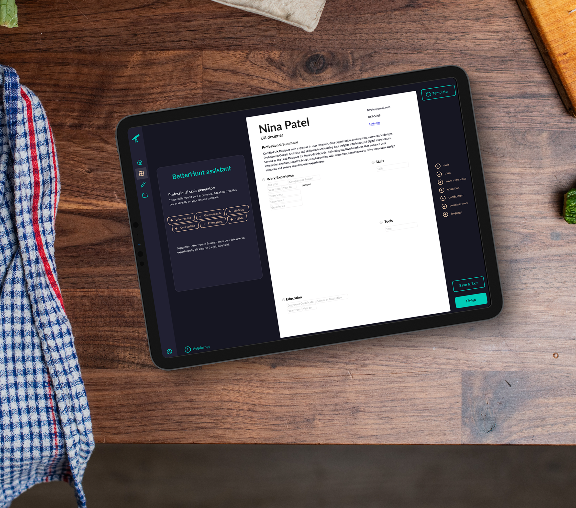 From the ground up, I worked with BetterHunt product owners to design a modern SaaS for job-seekers and workforce orgs. It began as a concept and ended in the hands of our developers.